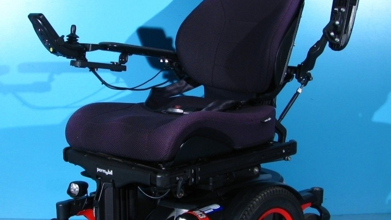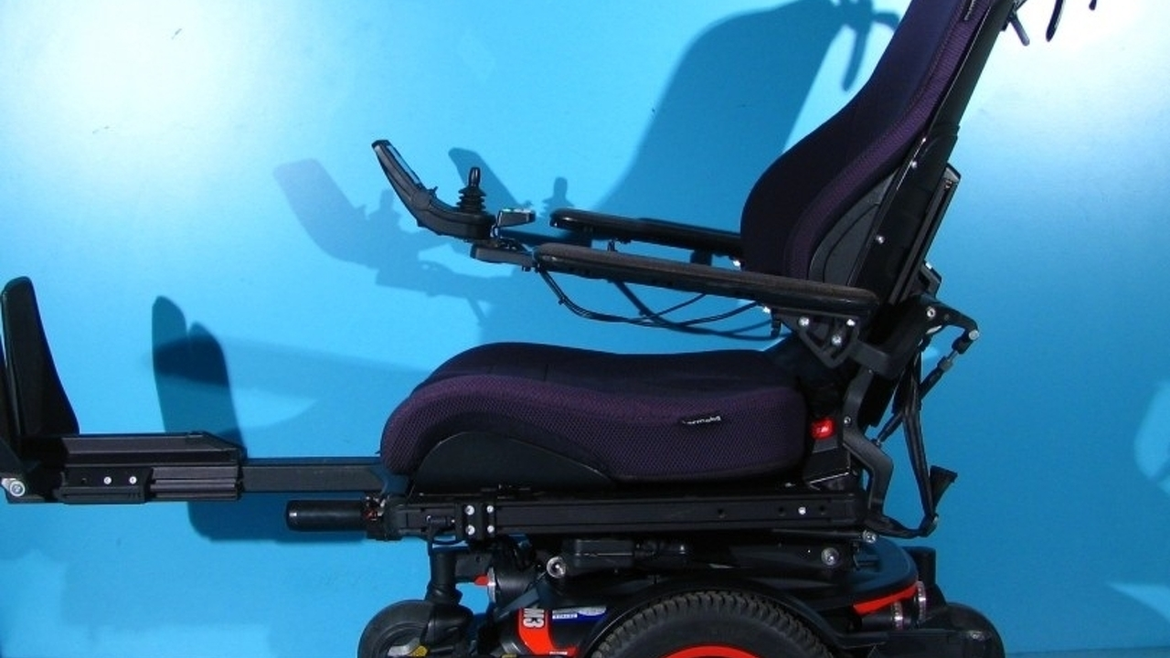 Scaun cu rotile electric, second hand, cu comandă pe joystick, destinat persoanelor cu handicap și celor cu deficiențe locomotorii. Caruciorul electric este proiectat pentru a oferi siguranță, stabilitate și confort, fiind dotat cu sistem de iluminare și semnalizare, ceea ce îi permite utilizarea pe drumurile publice.