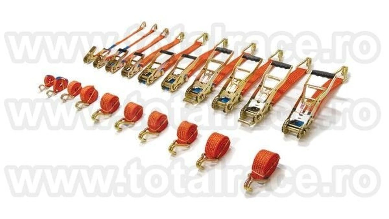 Total Race Romania livreaza rapid din stoc chingi ancorare marfa din poliester cu clichet, lungime 12 metri ,chingi de ancorare marfa pe camioane, chingi de arimare, chinga de ancorare paleti, chinga de ancorat marfa din doua parti, lungime 12 metri, chingi productie Olanda, dispozitive de ancorat marfa , accesorii pentru ancorat, protectii chingi de ancorat, protectii chingi de ancorare din PVC, echipamente de ancorare, dispozitive de ancorare din chingi textile din poliester, chingi textile de ancorare cu clichet si carlige la capete lungime 10 metri.