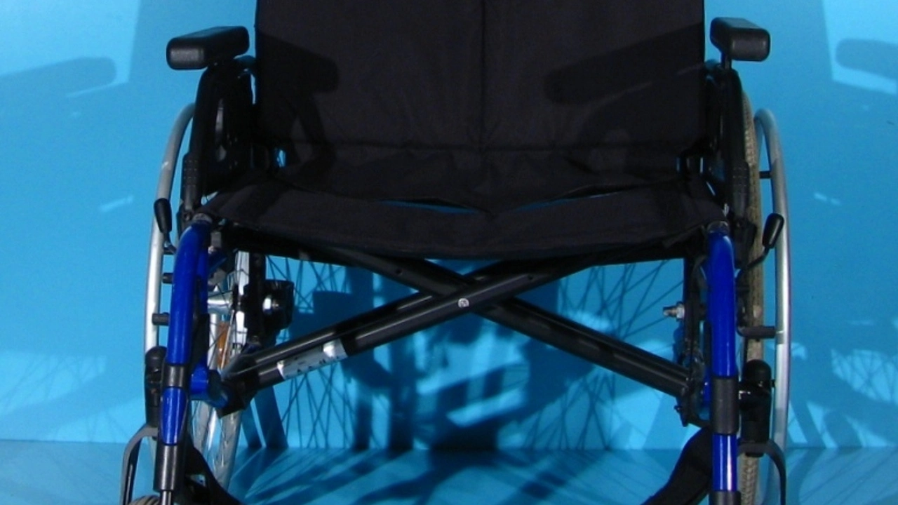 Scaunul rulant are schelet din aluminiu, vopsit epoxy.