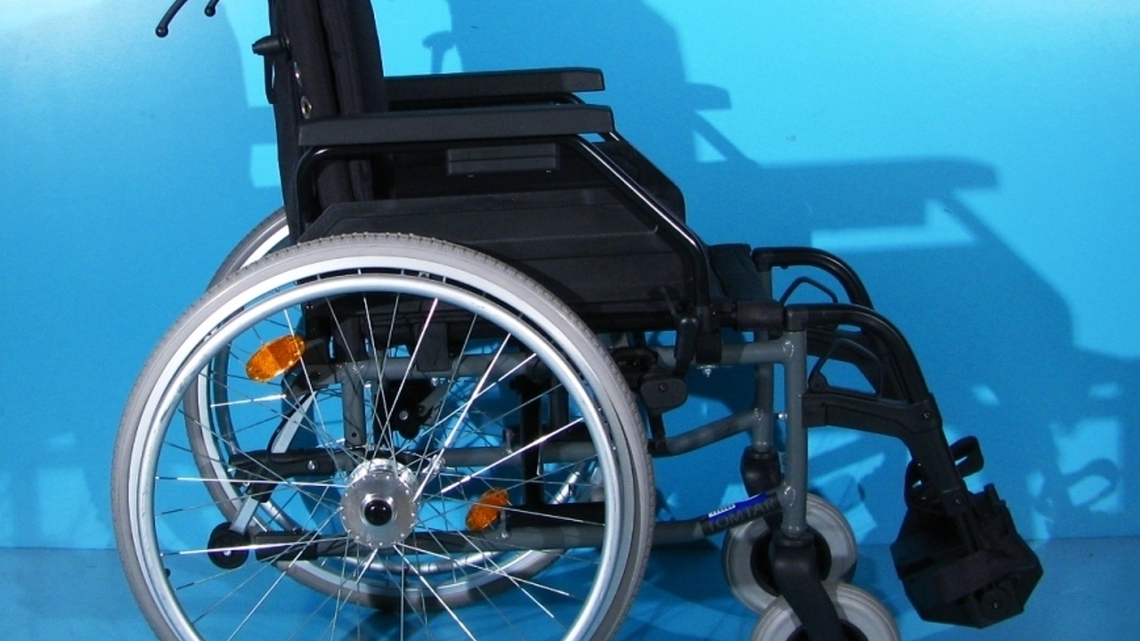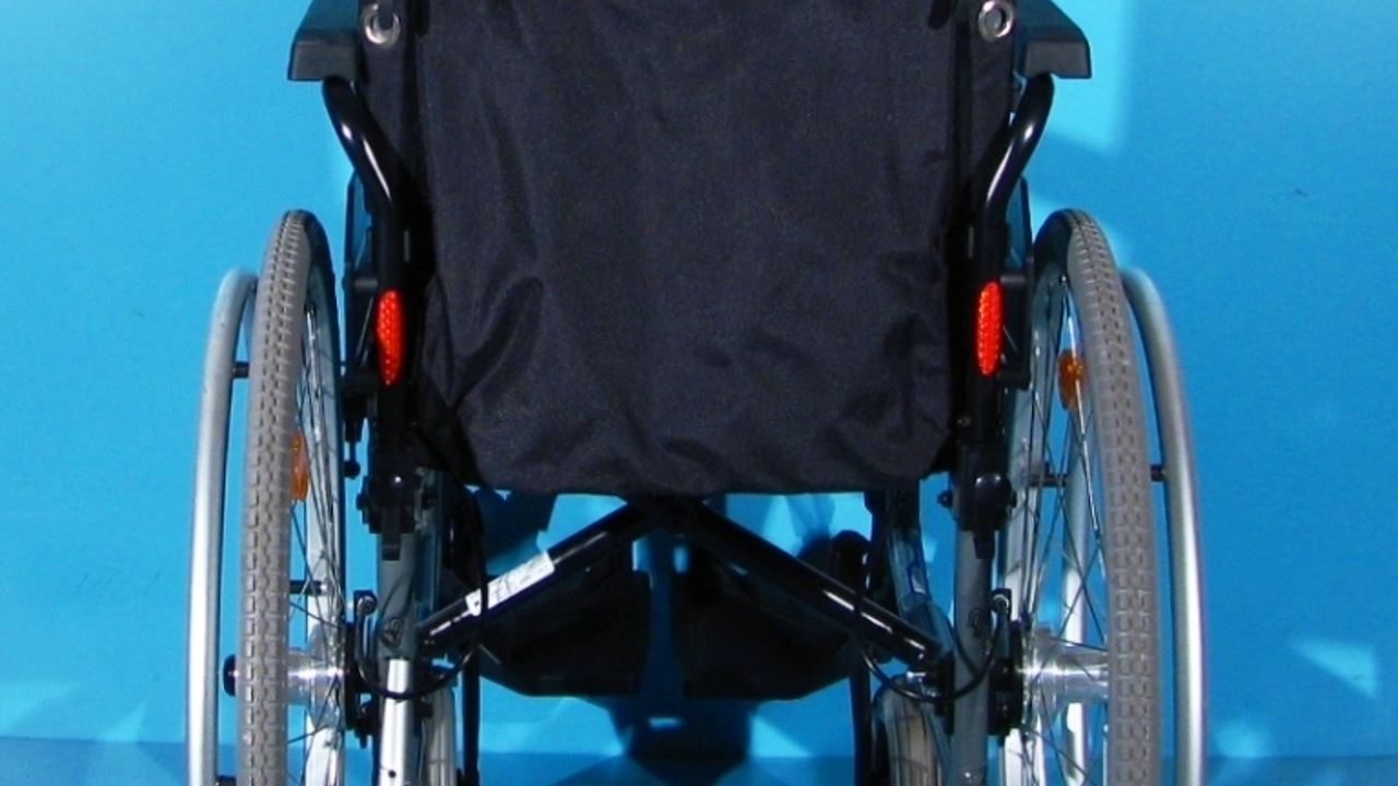 Scaunul handicap este dotat cu rotita antirasturnare pe partea stanga.