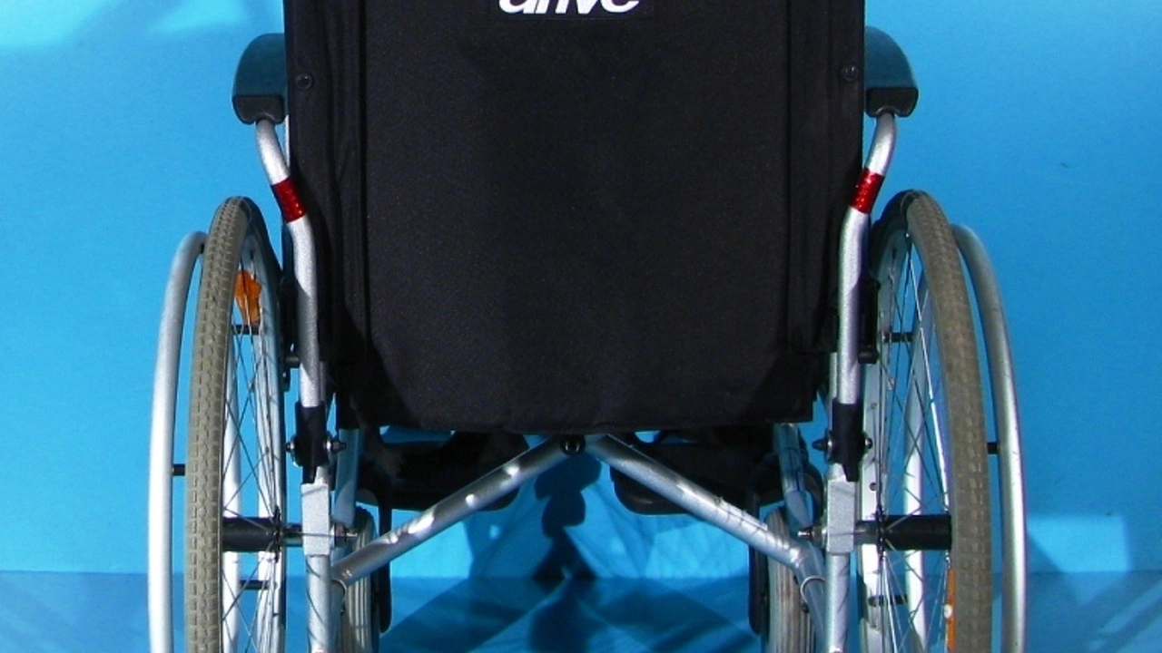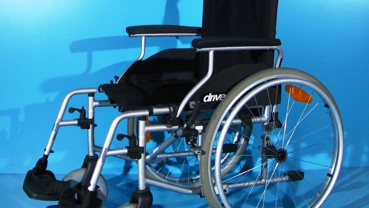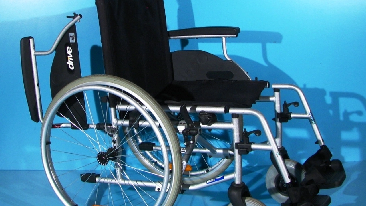 Scaun handicap dotat cu frane pentru pacient.
