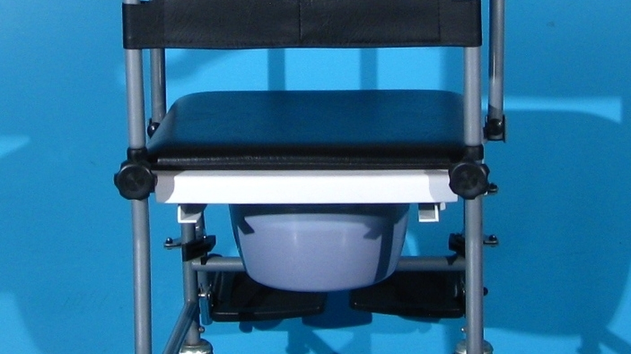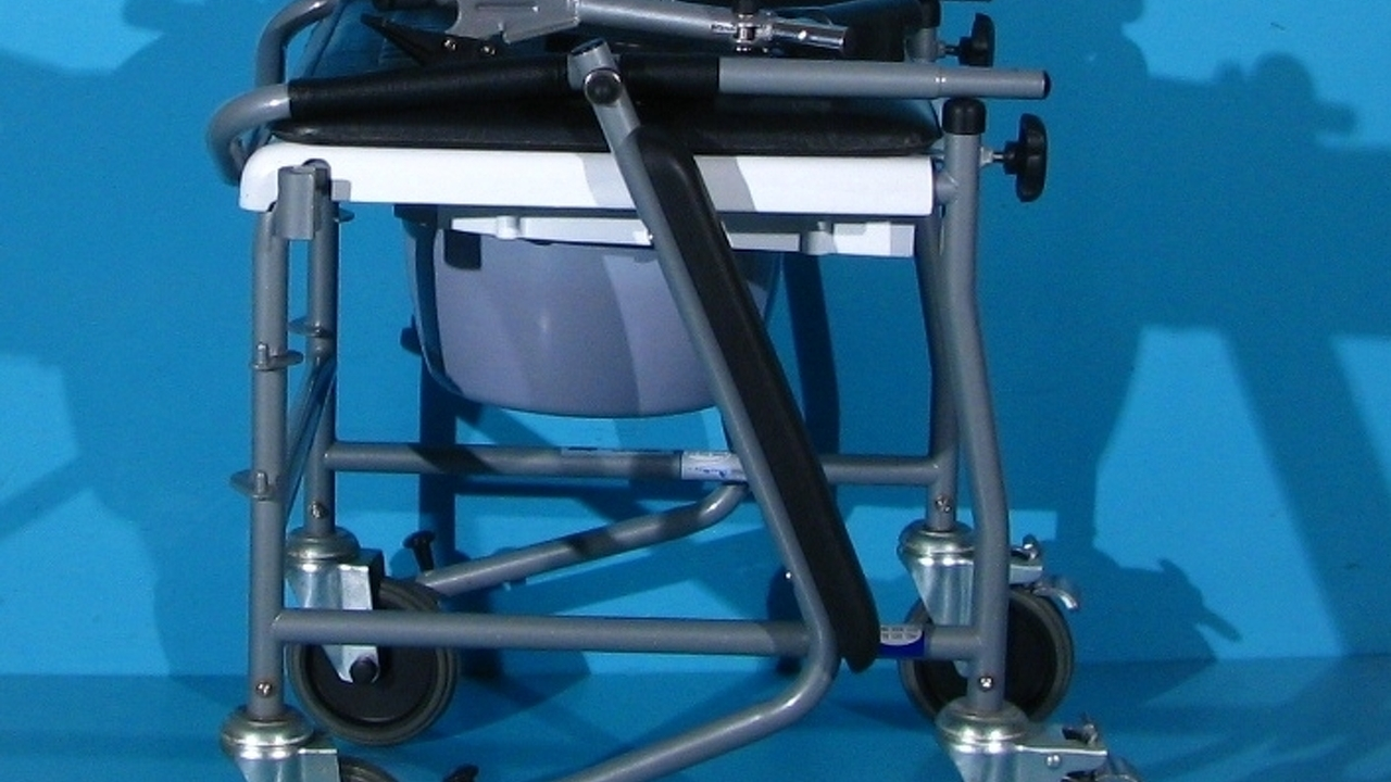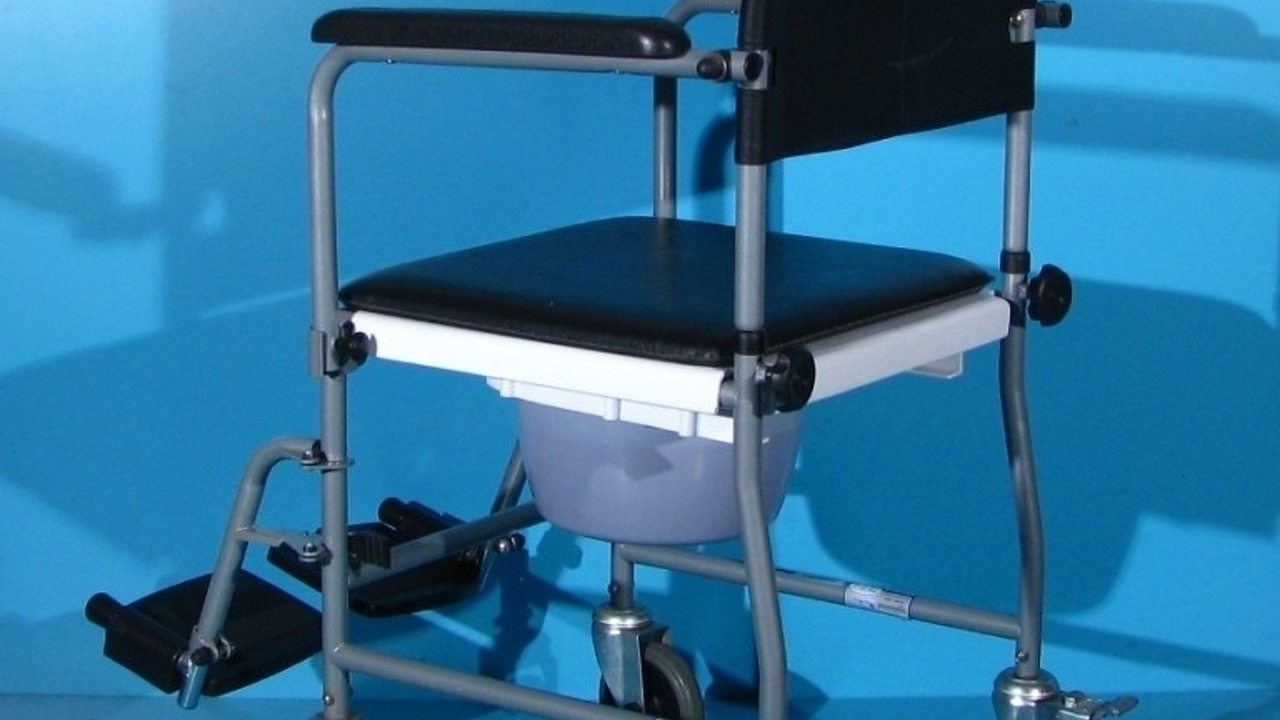 Acest carucior cu wc poate fi folosit in locuinta si ca scaun cu rotile.