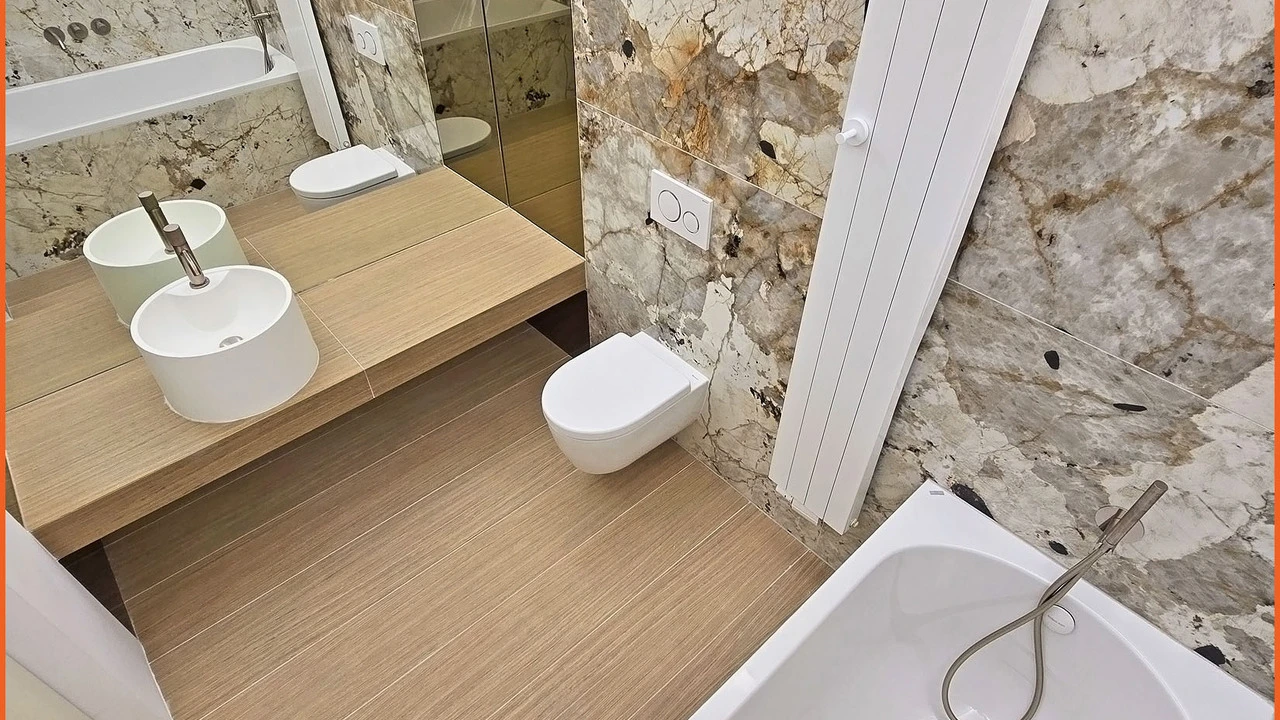 - Bai cu tavane extensibile, iluminare LED difuza, placari Florim si obiecte sanitare Daniel Rubinetterie; /