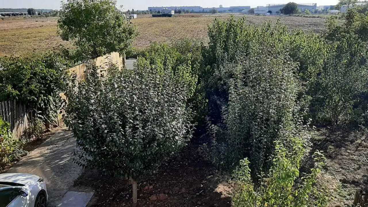 Proprietatea beneficiază de o deschidere de 18 metri la stradă și dispune de teren de 800 mp cu o livada pe rod (caisi, piersici, nectarini, pruni, cireși, meri, peri, gutui), iar amprenta casei la sol este de 110 mp si o suprafata totala de 220 mp.